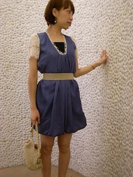 襟元と袖にアイボリーのレース!裾はバルーンシルエットです!