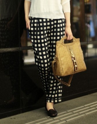 手描きのような雰囲気のある線が印象的な、チェックのセットアップ。 一瞬、オールインワンのようにも見えるのですが、実は着やすいセットアップ仕様なのです。