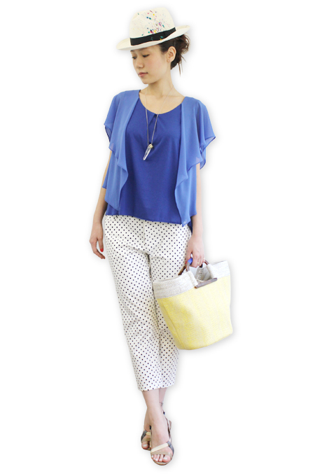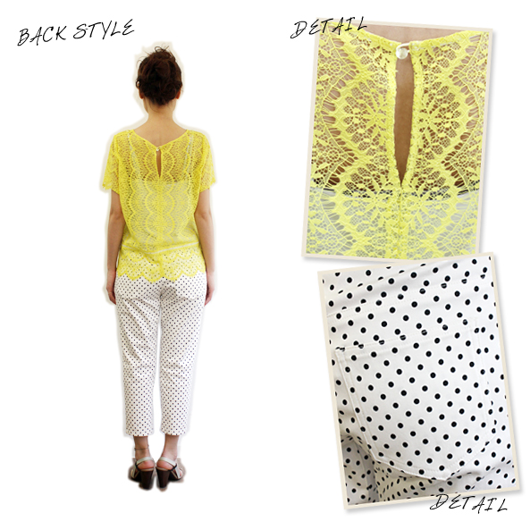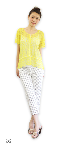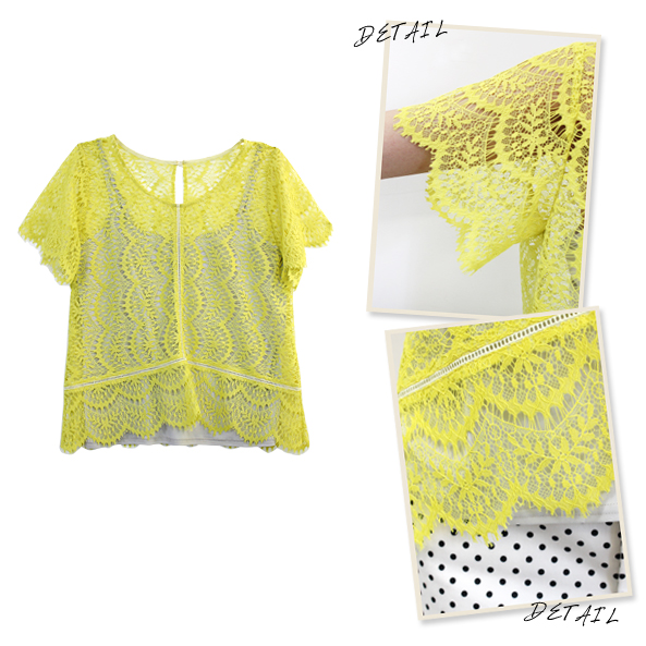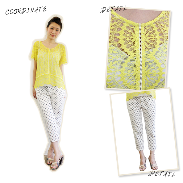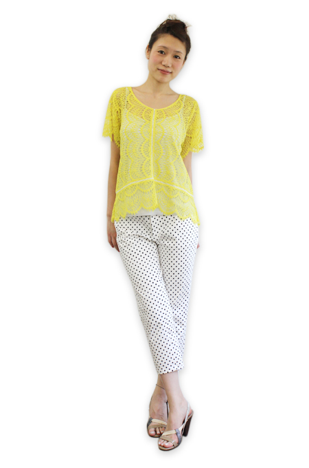 今年のマストアイテムの一つ、レースアイテム。こんなハッピーカラーのレース なら、コーディネートをぐっと今年らしくブラッシュアップしてくれます。インナーのキャミソールもセットになっているので、透けも気になりません。