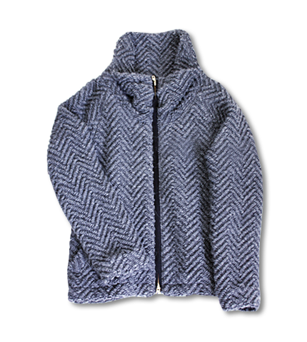 温かみのあるジャガードが印象的なジップアップブルゾン。