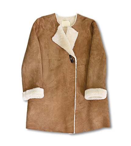 ドロップショルダーでリラックスシルエットのムートンコート。