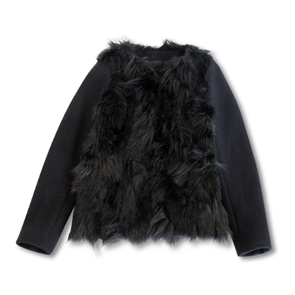 一見ベストにも見える、身頃にだけ毛足の長いファーが施された ジャケット。