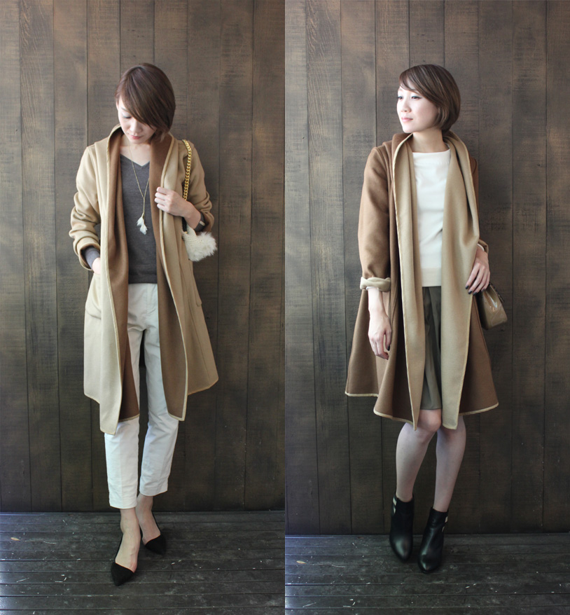 限定カラー2色展開 キャメル×ベージュ・ネイビー×グレーの使えるカラーだけをセレクト。リバーシブルのどちらのカラーもコーディネートしやすいベーシックなカラーなので、秋冬のワードローブの幅を広げてくれること間違いなしです。