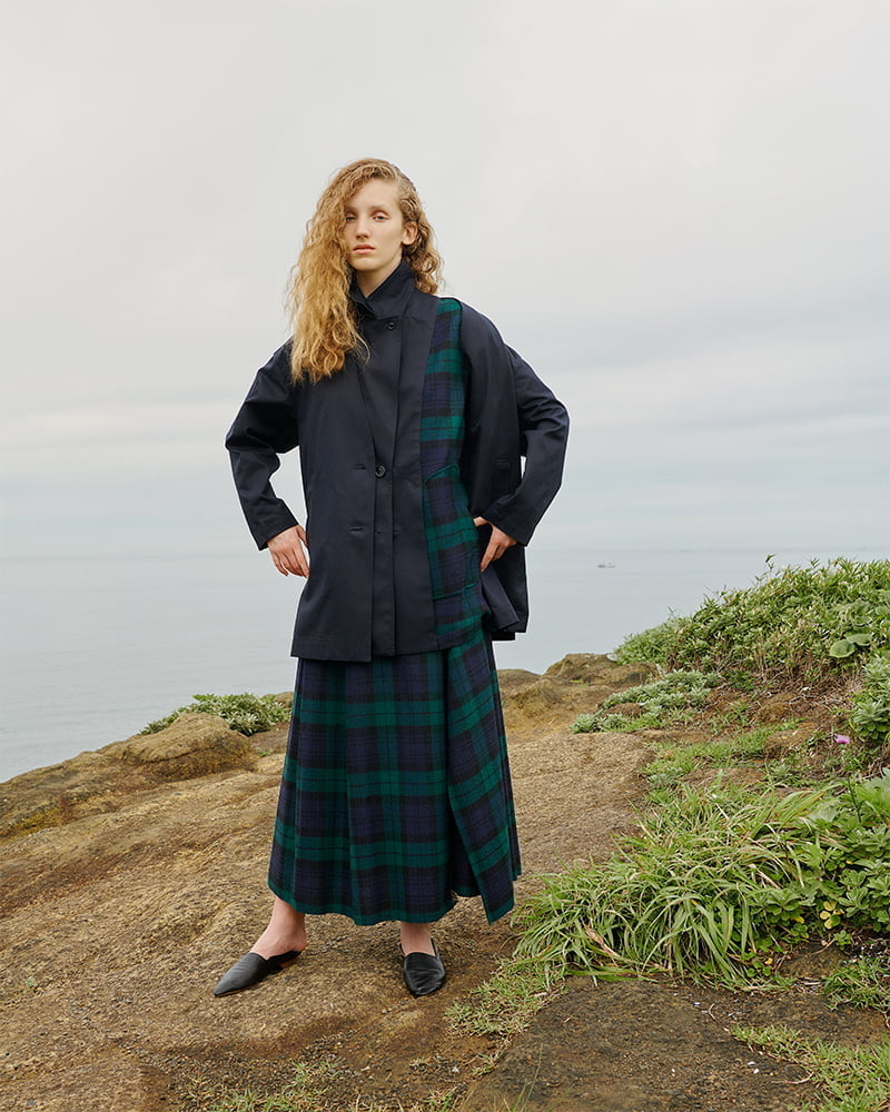 Four way Jacket 74,000yen(+tax) Skirt 39,000yen(+tax) Shoes 23,000yen(+tax)by GALARDAGALANTE